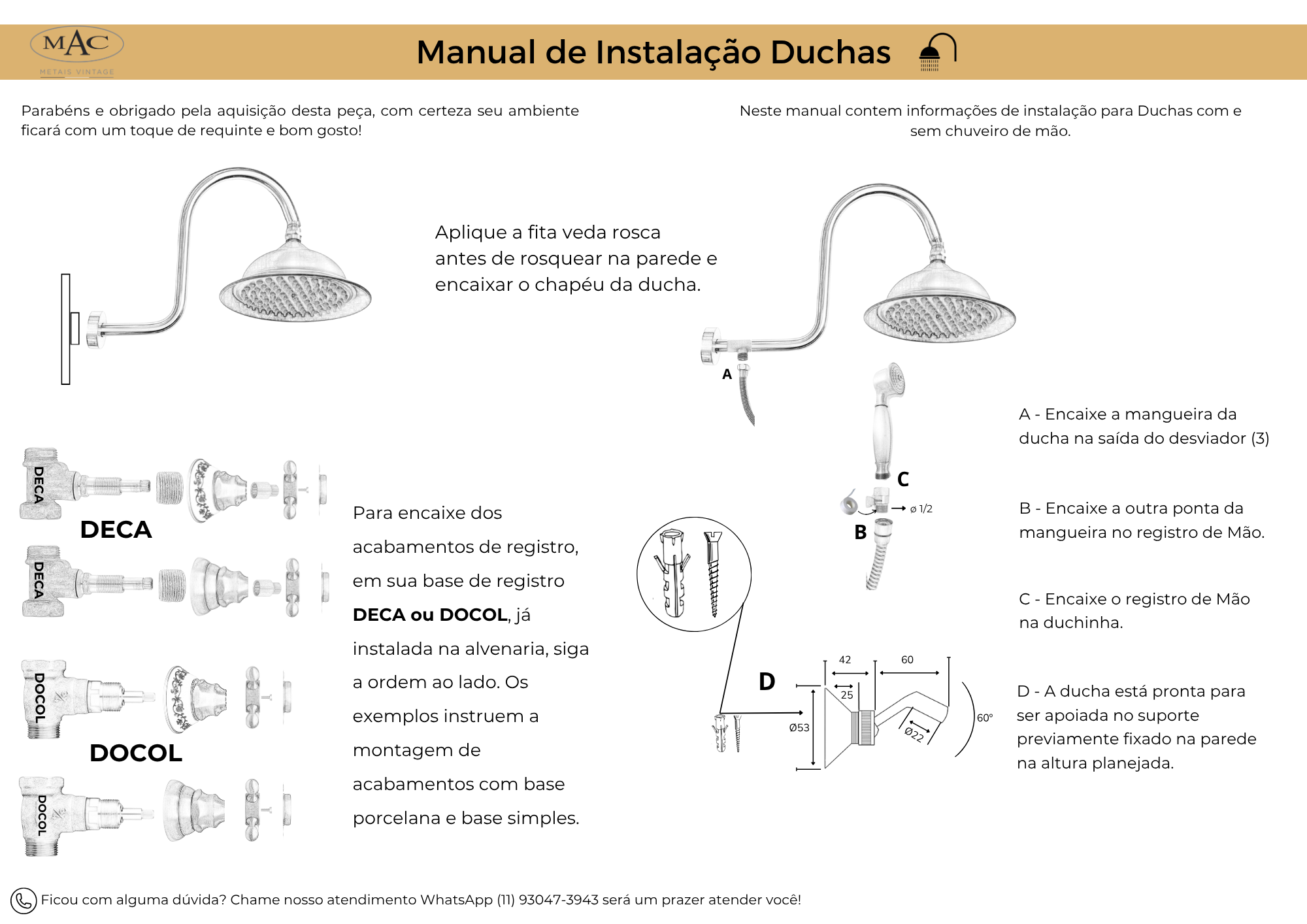 A instalação é simples, mas requer um mínimo de conhecimento em instalações hidráulicas. Os itens de instalação estão inclusos na caixa. (Na dúvida recorra a um profissional especializado).