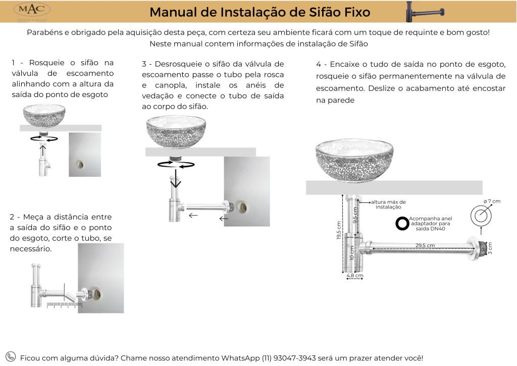 Sifão Fixo Em Latão Vintage Dourado alia design clássico com praticidade, o sifão fixo da MAC Metais é a escolha perfeita para revelar o bom gosto e luxo mesmo nos detalhes. Confeccionado com primor e ligas metálicas de qualidade, o Sifão Vintage em Latão atende à necessidade, mantendo higiene, durabilidade e deixando seu ambiente com acabamento único e sofisticado sem abrir mão do charme retrô com a excelência dos produtos MAC Metais, especialista em Metais Vintage.